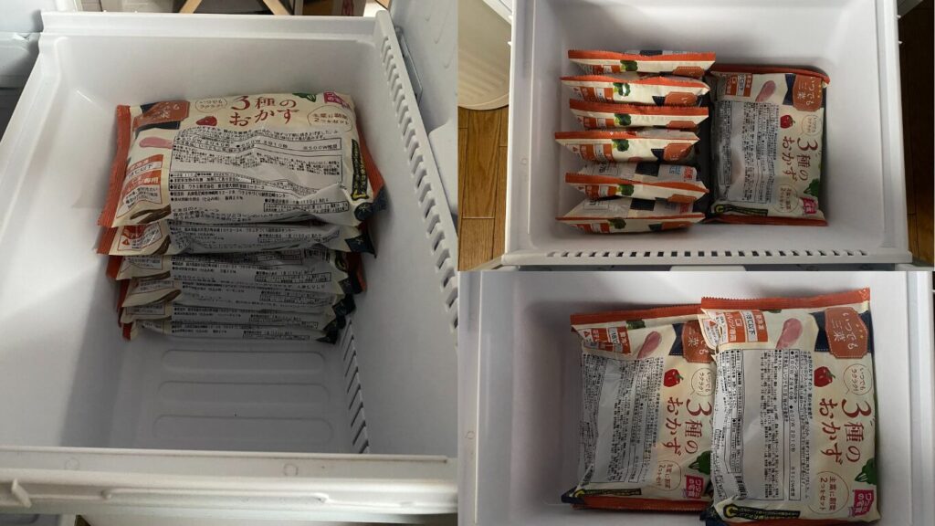 一人暮らしのコンパクトな冷凍庫でも、10食を無理なく収納できました。