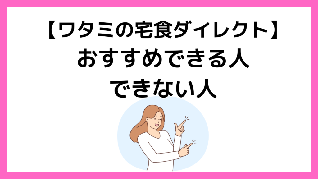 ワタミの宅食ダイレクトを実際に利用してみて感じた、おすすめできる人/おすすめできない人の特徴をまとめました。